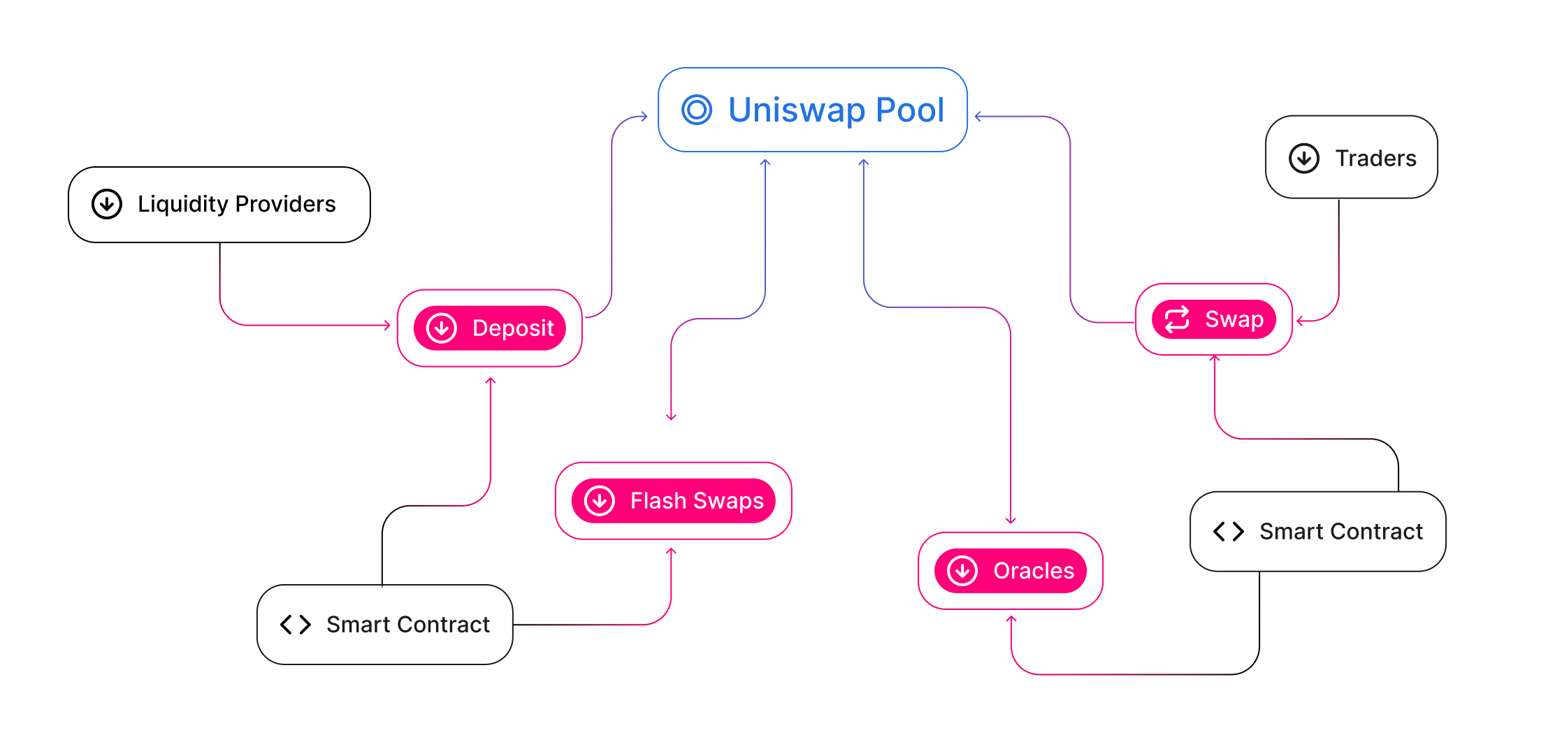 • Smart contract developers use the suite of functions available to invent new DeFi tools and other various experimental ideas. See projects like Unisocks or Zora, among many, many others.